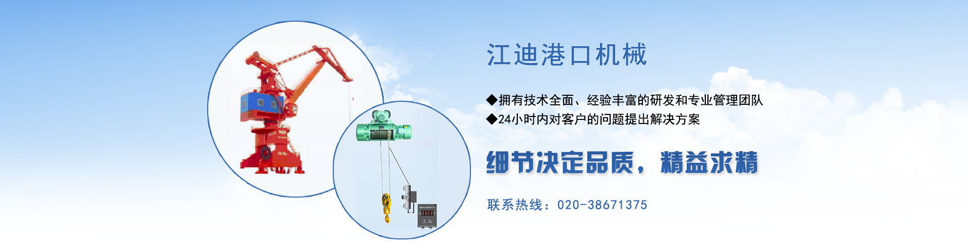 廣州江迪擁有10余名技術全面、經驗豐富的研發(fā)和專業(yè)管理團隊,其中博士1人,碩士2人。專業(yè)工程師6人。公司參股天津市華瑞港口機械設備有限公司。公司技術力量起步于港口起重設備,從理論研究、技術研發(fā)、生產制造到維修和技術改造,精研超過15年,設計、制造、維修的起重設備主要產品為:內核港口、企業(yè)碼頭集裝箱固定式起重機,包括抓斗吊鉤兩用的5t、10t、16t、25t、40t、50t等固定式起重機,還設計制造了船廠系列的20t、30t、40t等固定式和門座式起重機,產品幅射東北地區、渤海灣地區、長三角地區、珠三角和華南地區等多個省市大中型港口,特種設備檢驗一次通過率與長期使用安全合格率均為100%。團隊本著誠實守信與用戶至上的經營理念,生產安裝的產品和專業(yè)良好的售后服務,獲得用戶廣泛好評。